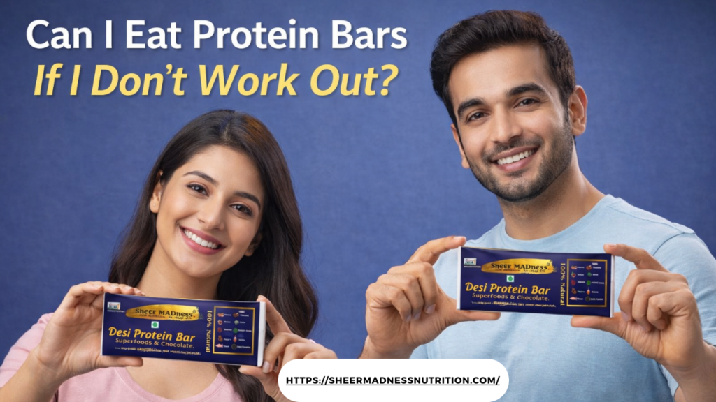 Yes — you can eat protein bars even if you don’t work out, especially clean ones like the Sheer MADness Desi Protein Bar and Sheer MADness Energy Bars from the brand Sheer MADness that use all-natural, real food ingredients and have no chemical additives or preservatives. When chosen wisely, protein bars can be part of a balanced diet, helping you manage hunger and support overall health — not just gym goals.