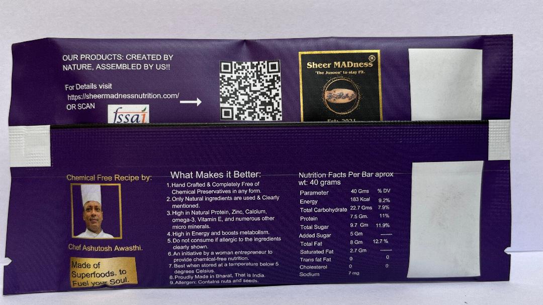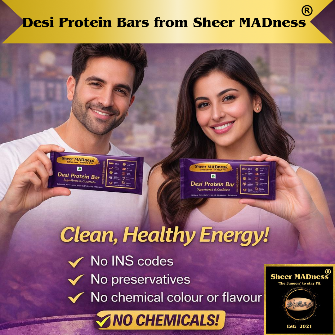 Sheer MADness Desi Protein Bar – Healthiest & The only Chemical-Free Bars in India• No Preservatives• No INS Codes• No Chemical colours or Flavours.
